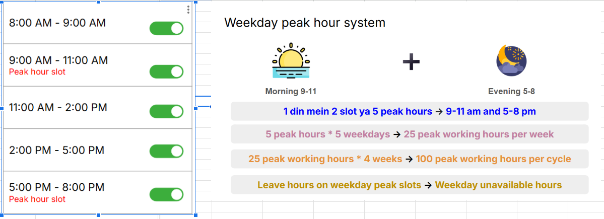 👉 Example: Agar aap 12–1 baje free nahi ho, toh 11-2 slot OFF hi hoga