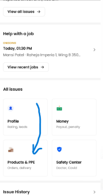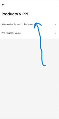 Help > Products & PPE > View order list and raise issue > Select order > Need help > Report damaged/missing/incorrect items > Select SKU > Click the image of the damaged items > Approve (SS given)